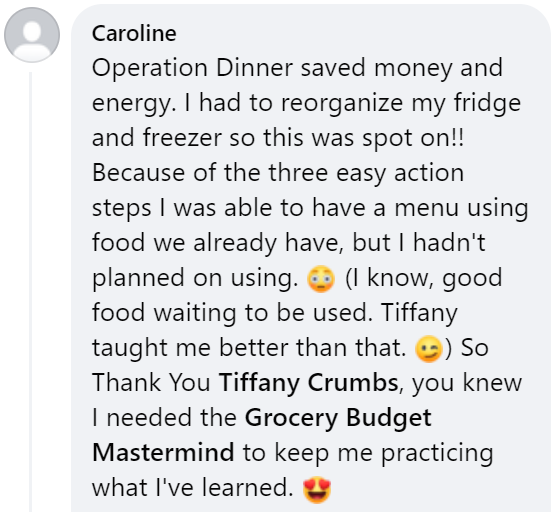 Ask questions, share ideas, and learn from members in our exclusive Grocery Budget Mastermind Facebook group. We're all in this together, and we want to cheer you on!